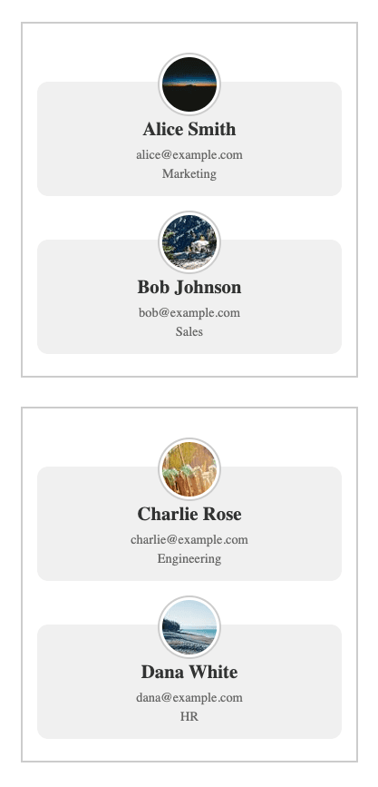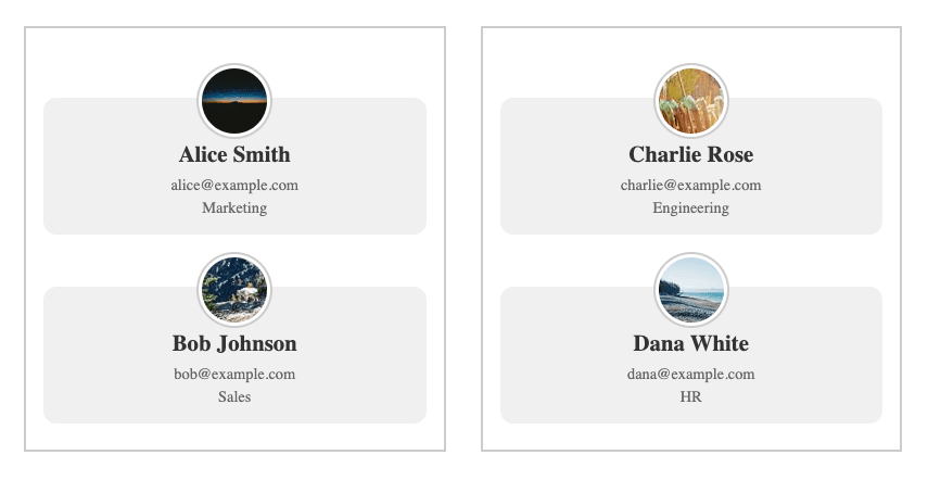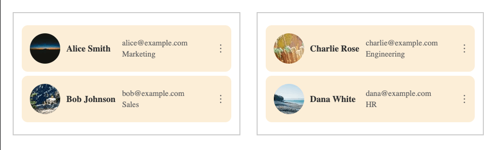 With container queries, we gain finer control over layout responsiveness. In this example, the card adjusts its layout based on the width of its parent container.