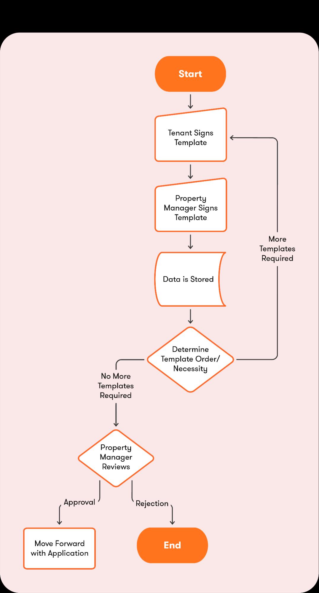 The workflow consists of Property Managers sending Tenants the templated forms created above.