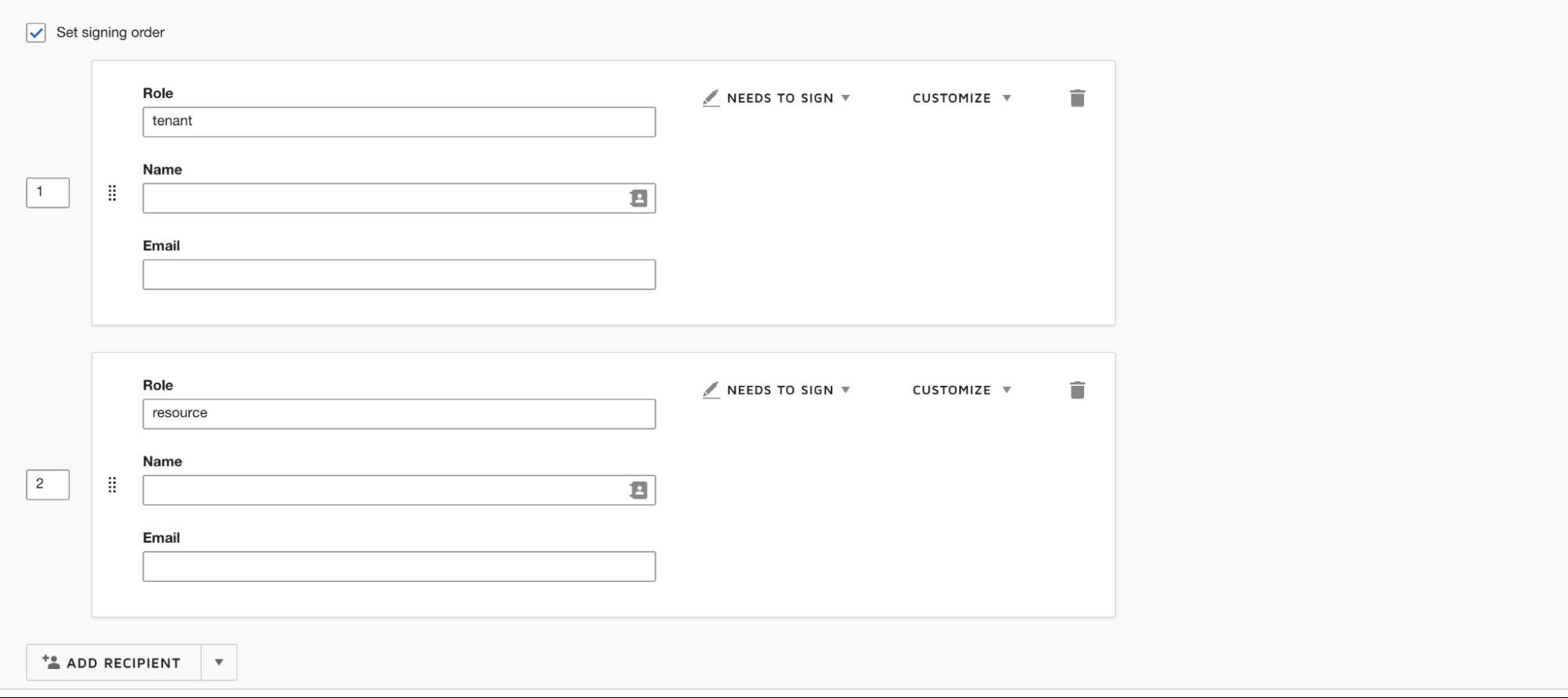 Our client required signatures of both Tenants and Property Management Companies to be signed and stored in DocuSign.