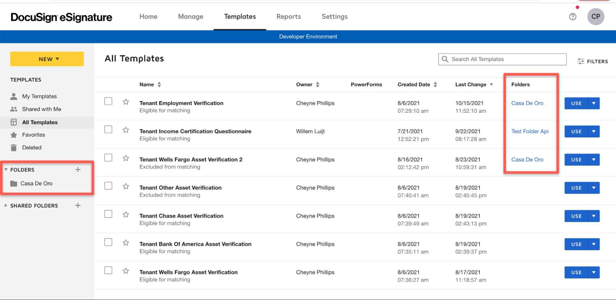 Using DocuSigns folder structure, we were able to assign forms to specific properties organized by folders.
