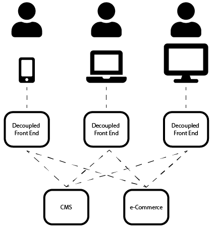 When ecommerce first surfaced, desktops were the only customer touchpoint. This made selling online more straightforward. As such, a coupled front end and back end existing as a unit was more than sufficient to handle sales and the nuances of various customers.