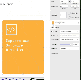 7. Now when you go back to the artboard and try inserting this block, you will get the following override options