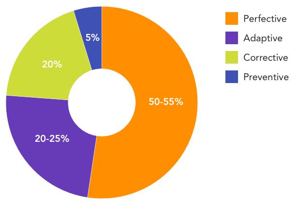 Perfective changes refers to the evolution of requirements and features in your existing system. As your software gets exposed to users they will think of different ways to expand the system or suggest new features that they would like to see as part of the software, which in turn can become future enhancements to the system. Perfective changes also includes removing features from a system that are not effective and functional to the end goal of the system. Surprisingly, 50-55% of most maintenance work is attributed to perfective changes.
