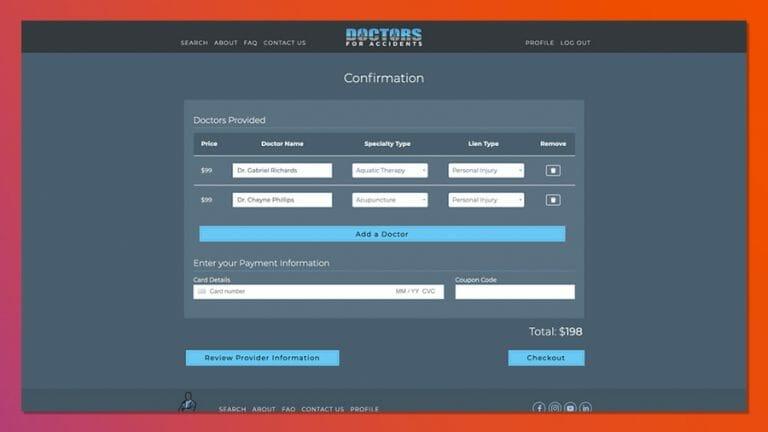 This is a membership site for servicing accident victims. This site provides accident victims a list of doctors who are willing to work on contingency, and who will provide basic evaluations and bill estimates for pending court cases. The site is searchable by doctor specialty and location.
