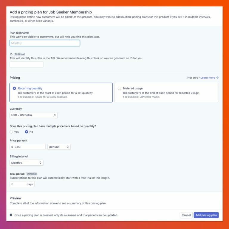 When changing subscription plans for a client, we learned that every time a price or frequency of a subscription would change, a new plan needed to be created in Stripe with a new frequency.