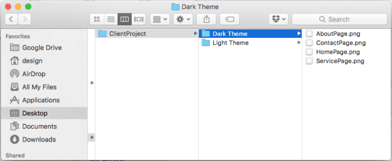 Sketch can also organize all of your exports. All you need to do is name your artboards utilizing the same naming convention they have with symbols. Ex: If I have 2 themes I’d like to show a client with multiple screens within each, I’d set up my artboard as follows: