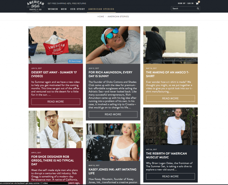 An integrated blog allows you to show additional dimensions about your brand. Check out American Stories, a blog we recently built for American Made Supply Company. American Stories allows the crew at AMSCO to tell more stories about the people behind the brand. The blog adds to the brands by highlighting areas beyond the great products.
